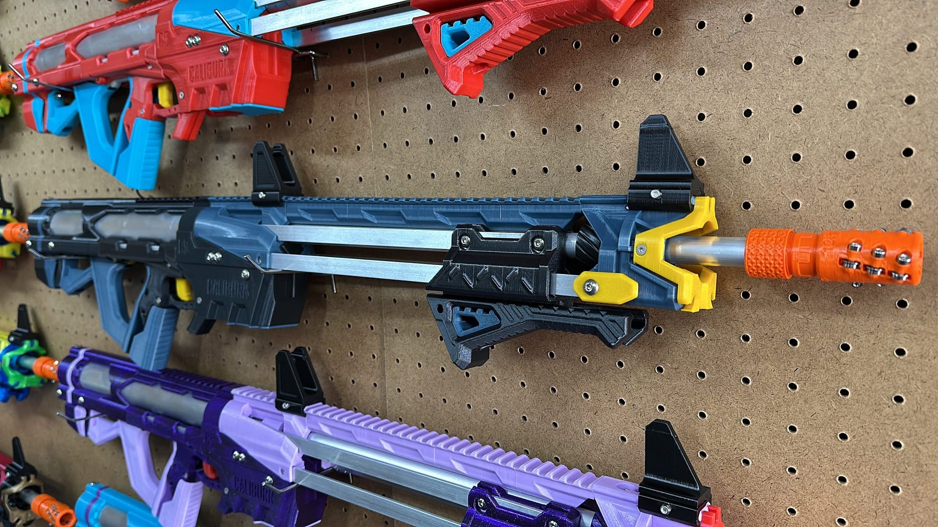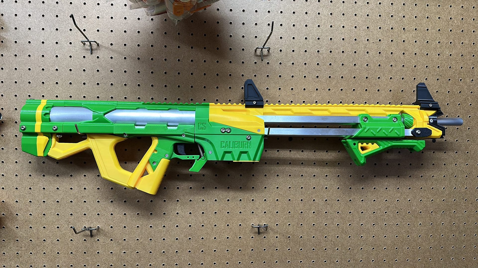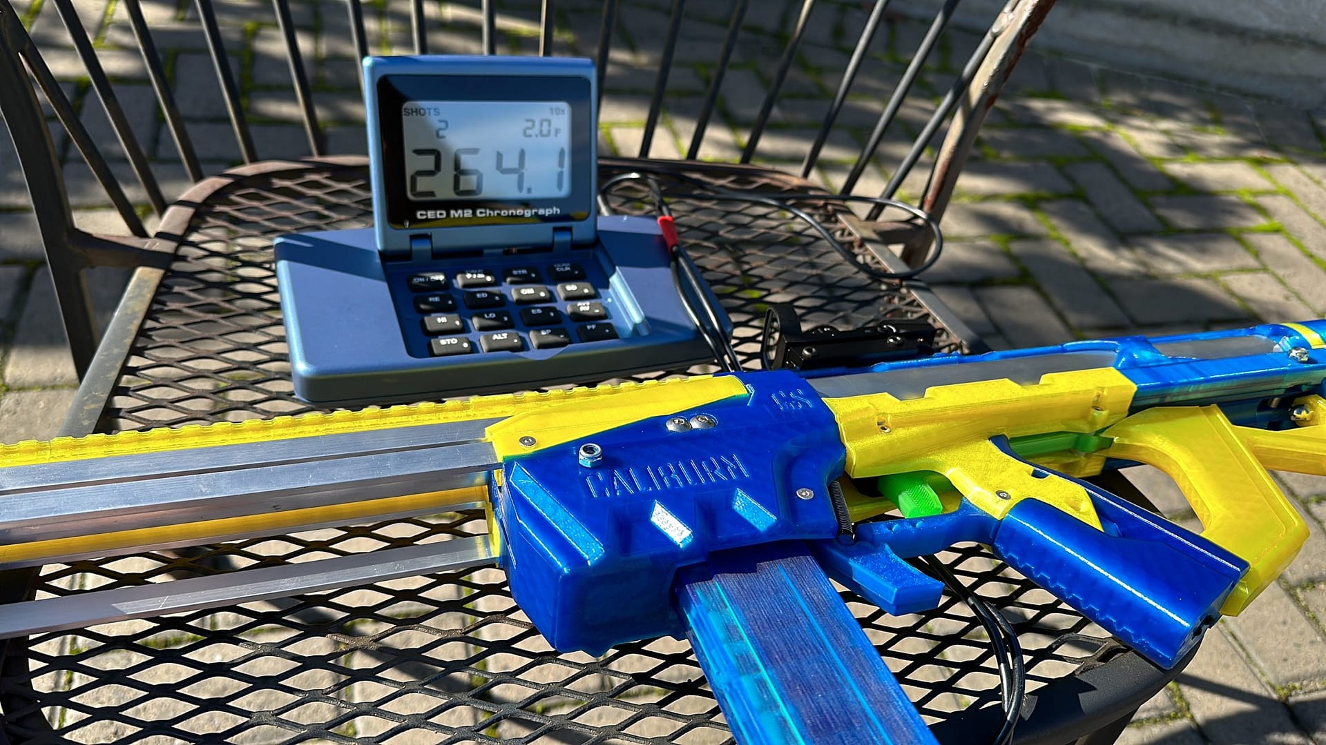 Our Caliburn blasters average between 240 and 260 fps and with regular maintenance (reapplying lube) can maintain those velocities for a long time. You can also 3d print your own blaster or replacement parts using the files provided here: https://www.printables.com/model/1047758-caliburn-4-c4-homemade-nerf-blaster-metric-remix